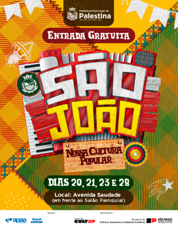 Prepare o traje caipira, separe o chapéu de palha e venha viver dias de pura emoção no São João de Palestina! Uma das festas mais tradicionais da cidade está super especial, celebrando a nossa cultura popular com muita música, dança e sabores típicos.